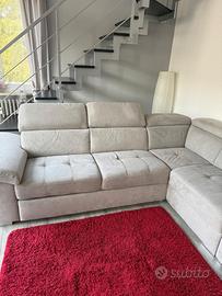 Vendo divano letto angolare rivestimento tessuto grigio con meccanismo estraibile su ambo i lati. Dimensioni - 350 x 275 x H 75 cm. Comprato nuovo a marzo 2025, dimostrabile con fattura. In perfette condizioni e senza segni.