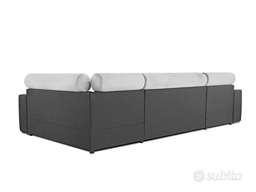 - PREZZO VALIDO FINO AL 01 APRILE 2026! - Cerchi un divano panoramico dalla struttura robusta ed affidabile? I nostri divani, prodotti da aziende competenti e specializzate, sono pezzi realizzati ad hoc per soddisfare i tuoi gusti più personali. Questo divano angolare ad U è realizzato con materiali di prima qualità ed è costruito per resistere. La sua struttura è solida e i rivestimenti di alta qualità ne assicurano una resistenza eccezionale all’usura. Personalizzalo con il colore che preferisci e goditi il comfort di un divano creato su misura. Prodotto esclusivo, creato apposta per te. Sottolineiamo che il rivestimento della funzione letto che fuoriesce può essere di colore diverso da quello evidenziato in foto e comunque non è in tinta ed è differente dalla combinazione di colore del divano che si sceglie. Misure: lunghezza 332 cm – altezza 93 cm – profondità 185/185 cm – dimensione letto 278×132 cm Perché il divano Toronto è così speciale? Materiali robusti e di qualità: anima in legno massello e imbottitura in schiuma di poliuretano ad alta resilienza dalla densità di 40 kg/m3. Piedi in metallo. Cinghie di sostegno in ferro per sostenere il peso e le sollecitazioni con maggiore resistenza Funzione letto: si trasforma in un letto con un semplice gesto, con meccanismo di apertura DELFIN, offrendo una soluzione pratica per ogni evenienza Box contenitore: dotato di ben 2 comodi spazi contenitore posti sotto le penisole, ideali per riporre coperte, cuscini, biancheria da letto o altri oggetti Posti: per 5 persone, offre spazio sufficiente per tutta la famiglia e gli amici Design: presenta linee pulite e un design minimalista, tipico dello stile moderno, con poggiatesta Versatilità: la configurazione angolare offre ampio spazio per sedersi e rilassarsi, mentre la chaise longue aggiunge un tocco di comfort extra