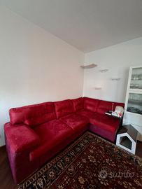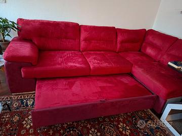 Vendo divano letto angolare in ottime condizioni, misure 280x230x 90. Bicolore rosso ciliegia e rosso bordeaux/violaceo. Ha un pouff contenitore che io ho staccato (vedi foto) ma che completa il divano. È in microfibra antimacchia e antigraffio, non sfoderabile. Il divano si apre nella parte sotto e diventa un letto matrimoniale. Si trova al secondo piano, si smonta in 3 pezzi (smontaggio e trasporto a carico del compratore).