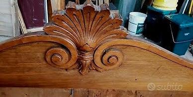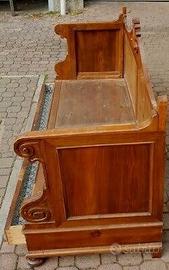 Vendo elegante divano letto antico in legno massello, caratterizzato da una splendida lavorazione artigianale e da dettagli decorativi originali d’epoca.