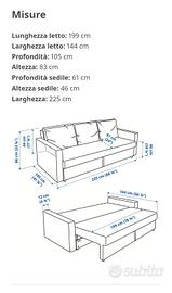 Nuovissimo divano letto con struttura in acciaio.