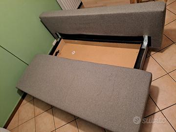 3 posti, cuscini inclusi, contenitore per coperte, biancheria o altro sotto la seduta.
