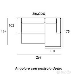 Divano Letto Angolare Con Penisola Destra L.269 P.175 H.94 - Meccanismo Estraibile Usato pochissimo come nuovo