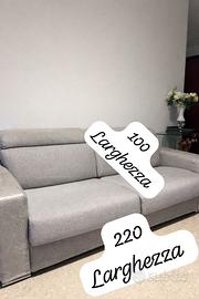 Divano 4 posti , rete letto matrimoniale. con materasso altezza 12cm , colore grigio perla, Poggia testa reclinabili .