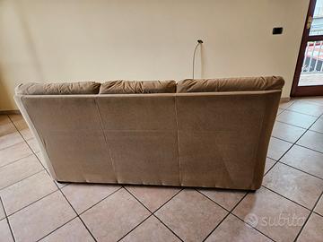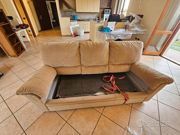 Vendo divano 3 posti con funzione letto, pratico e confortevole. Rivestimento in tessuto beige, morbido al tatto e facilmente abbinabile a diversi stili di arredamento.