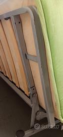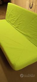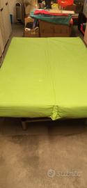 Divano letto , divanetto con lì schienale reclinabile che si trasforma in un letto da una piazza e mezza la fodera verde si può togliere ha la cerniera lampo doghe in legno leggerissimo