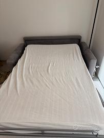 Divano letto PoltroneSofà completamente sfoderabile e lavabili in lavatrice Da una piazza e mezza. Appoggia testa reclinabili Regalo copri materasso in spugna, e lenzuola sopra- sotto con angoli e federa Misure da chiuso lunghezza 1.70 cm Profondità 1.00 cm Parzialmente smontabile (Fianchi poggiatesta traversa) Causa cambio casa prezzo trattabile