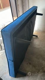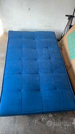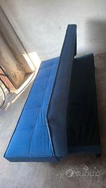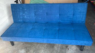 Vendo divano letto 3 posti di colore blu, trasformabile facilmente in letto.