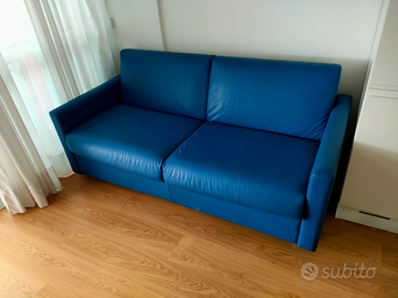 Divano letto matrimoniale in pelle blu marine usato pochissimo cm 187x87 rete cm 190x145 con materasso nuovo appena acquistato ritiro a mano a Bibione