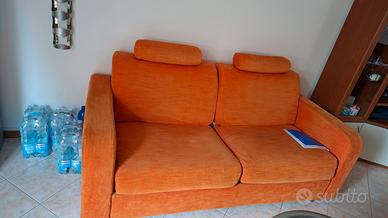 vendo divano letto di colore arancione e in condizioni generali buone. è completo di materasso e poggiatesta . presenta piccolo difetto di apertura e chiusura del divano letto a causa della rottura di una piccola staffa. Prezzo trattabile