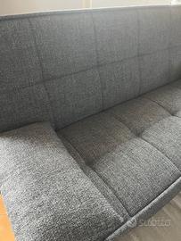 divano letto che unisce la praticità di un comodo divano all'utilità di un letto, rendendolo perfetto per spazi ridotti o per ospitare amici e parenti durante la notte. Il divano letto 3 posti è dotato di meccanismo clic clac che lo trasforma da divano a letto in 3 semplici mosse. Rivestimento in tessuto grigio. Misure divano: L.190 P.90H.95cm. Dimensioni letto aperto L.190 P.110 cm