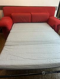 Divano due posti , in alcantara rosso sfoderabile , fodere lavabili in lavatrice .