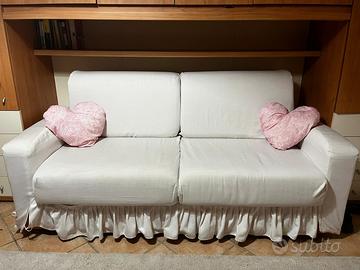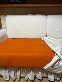Vendo divano letto 2 posti, in buone condizioni estetiche, con rivestimento bianco fatto su misura (la struttura sotto è color arancio).