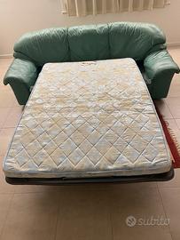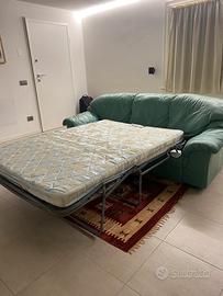 Vendo divano letto in pelle, verde , di Divani & Divani by Natuzzi a 3 posti. Per correttezza e quindi per evitare perdite di tempo, faccio presente che i cuscini presentano delle rigature dovute al tempo e che il sistema di apertura e chiusura del letto, ad una piazza e mezza, necessita di un pó di impegno. Nel caso il divano è disponibile per essere visionato e provato.