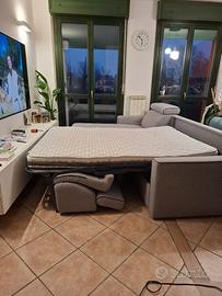 misure 270x95 penisola contenitore 190x80 può essere messa sia destra che sinistra. come nuovo tenuto sempre coperto nessun graffio e nessuna macchia, tessuto antimacchia tutto sfoderabile. materasso alto 20 cm. prezzo euro 1400 pagato 3.800 euro due anni fa. tel. 3491682642