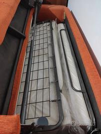 divano letto colore arancione usato solo a divano... materasso letto nuovo mai usato... ancora impallato si vede anche dalla foto....x altre foto... posso fare..