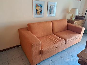 divano letto matrimoniale, tessuto arancione ottime condizioni