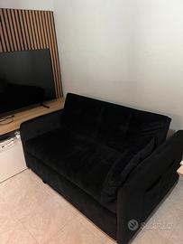 Vendo divano letto 2 posti, colore nero, comprato a dicembre 2025, quindi usato pochisismo , include due cuscini piccoli fu in piu si puo metterlo nella presa e caricare il telefono