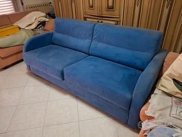 Divano letto blu alcantara, nuovo, Chateau d'ax, mai utilizzato. Tessuto e meccanismi nuovi. Trasporto a carico dell'acquirente. Disponibilità al ritiro in data da concordarsi causa residenza fuori sede.