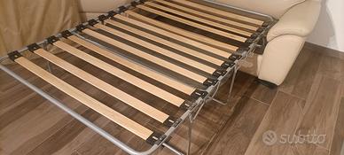 Vendo in ottimo stato divano letto Chateaux d'Ax in pelle colore beige. Il materasso è ancora imballato (mai usato) con rete in doghe di legno come nuova. Il trasporto è a carico di chi acquista.
