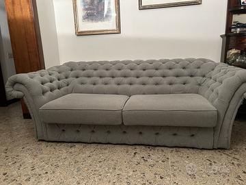 Vendo divano letto Chesterfield 3 posti in stoffa grigio chiaro (grigio perla), design inglese originale, importato in Italia. Ritiro a mano.