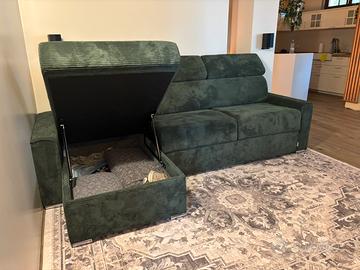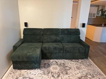 Vendesi Divano letto ang. a ribalta ang. rev. Letto doghe larghe 140cm Mater. 18cm Velluto a coste Verde. Nuovo. Vendo per errore colore