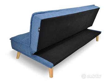 Divano letto 3 posti in tessuto vellutato modello Bart by Samira, con un solo semplice movimento si trasforma in un comodo ed accogliente letto. Grazie al suo tessuto effetto velluto risulterà morbido e confortevole al tatto donandogli un tocco di eleganza. Questo divano letto clic clac, dalla linea pulita e raffinata, conferisce stile al vostro ambiente e grazie al suo design è adatto ad ogni tipo di arredo dal classico al moderno. Il divano pronto letto Bart dallo stile scandinavo, è dotato di piedi obliqui in legno naturale che gli conferiscono un aspetto vintage. Prodotto nuovo a prezzo di fabbrica. La consegna verrà effettuata a piano strada.