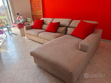 Divano con letto matrimoniale incorporato, e chaise lounge, tessuto sfoderabile e lavabile in microfibra, ideale anche per chi ha animali in casa.