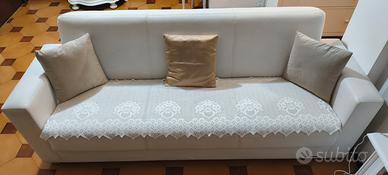 Salve, vendo divano letto con contenitore, 3 posti, meccanismo clik clak, misure: cm 225 (lunghezza compreso braccioli) x cm 80 (profondità compreso schienale) x cm 44 (altezza seduta), (bracciolo largo cm 16), in ecopelle bianca, come si può vedere dalle foto ha delle screpolature sull'ecopelle, funzionante, vendo a euro 100 per inutilizzo, non spedisco, grazie.