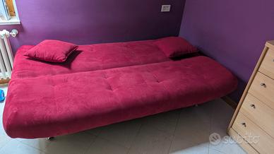 Si vende divano rosso 3 posti trasformabile in letto da una piazza e mezza. Il ritiro (ad un secondo piano senza ascensore) e il trasporto sono a carico di chi lo acquista.