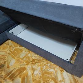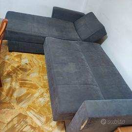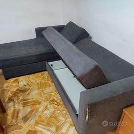 Vendo divano per inutilizzo. Divano angolare, apertura letto, con contenitore, colore grigio, tessuto scamosciato, in ottime condizioni. Tappezzeria leggermente scambiata. Braccio sinistro leggermente rovinato Lungo 230cm Alto 75cm Letto aperto 105x130 Penisola 165