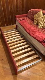 Vendo divano letto con struttura a doghe in legno, pratico e confortevole, perfetto per chi cerca una soluzione versatile per la propria casa. Ideale sia come comodo divano da giorno che come letto per gli ospiti, grazie ai due materassi singoli inclusi.