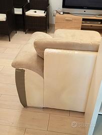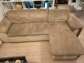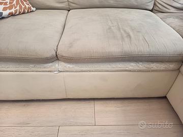 Divano letto con segni di usura nei profili in ecopelle come evidenziati nelle foto. Dimensioni 260 x 90 (160 lato penisola). Diventa letto estraendolo dalle due sedute fianco penisola, che a sua volta può contenere cuscini e piumone. Solo ritiro in Nardò.