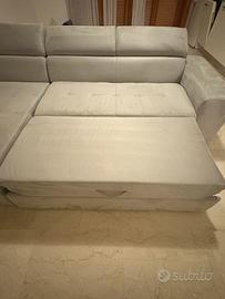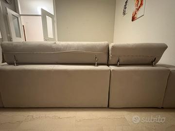 In ottime condizioni – acquistato da Ricci Casa due anni fa. Vendo causa trasloco. Divano letto con penisola contenitore a sinistra (vista frontale) e poggiatesta reclinabili in tessuto sfoderabili.