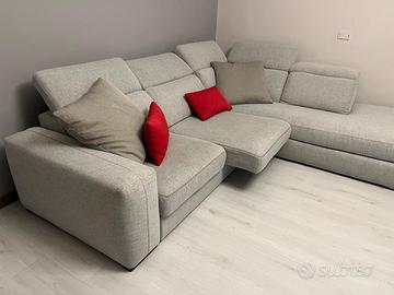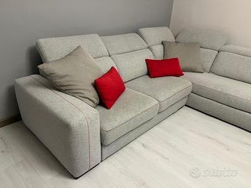 Come da titolo vendo divano letto con penisola per ammodernamento salotto, divano tenuto in modo maniacale, colore grigio con cuciture rosse, possibilitá di estrarre le due sedute e formare un vero e proprio letto (come da foto), poggiatesta regolabili, inclusi nel prezzo anche i 4 cuscini che vedete in foto, prezzo poco trattabile. Trasporto a carico dell’acquirente.