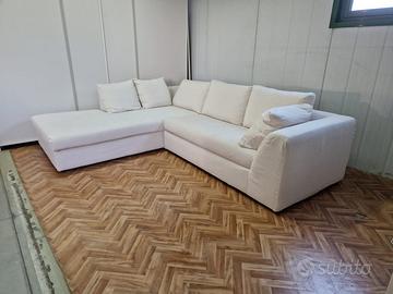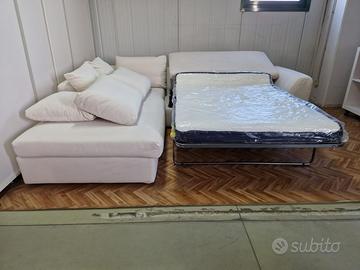 Divano-letto con penisola maxi. Cuscini di schienale in piuma d'oca. Materasso H 11 in espanso, rete elettrosaldata, Misure: Lunghezza 280 cm, profondità 232 cm. Materasso 123x192xH 11. Tessuto antimacchia e idrorepellente. Completamente sfoderabile.