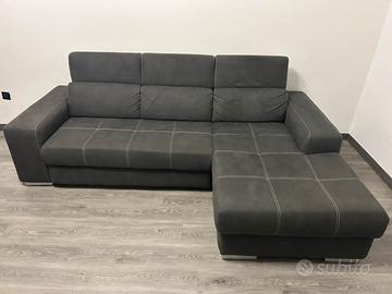 Vendo divano letto con penisola in tessuto fibra Elephant (simile Alcantara), colore grigio antracite.