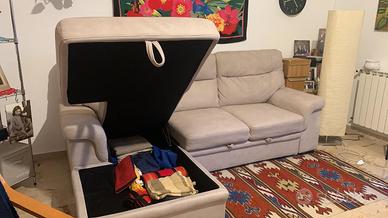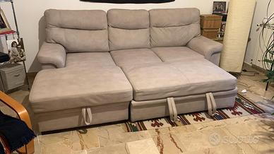 Causa trasferimento vendo divano molto comodo tre posti con chaise longue in simil alcantara con contenitore.