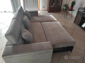 Vendo divano angolare con penisola, ACQUISTATO SETTIMANA SCORSA e usato pochissimo. Colore grigio chiaro, rivestimento in tessuto morbido e resistente. Dotato di schienali regolabili, ampio vano contenitore e funzione letto estraibile.Scomponibile*.