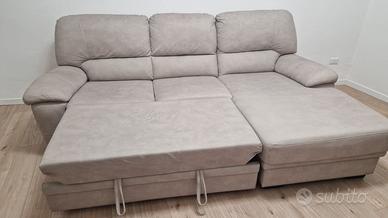 Vendo divano letto con penisola, il divano è stato usato veramente poco , vendo per cambio casa e mancanza di posto. il divano è stato acquistato da mondo convenienza, materiale fibra , divisibile in 2 parti, Le misure sono 250×100x h100 cm. Penisola 170 cm , prezzo trattabile. ritiro a mano no spedizione.