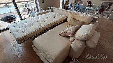 Svendo Divano-Letto 3/4 posti in tessuto, lunghezza tot 250 cm con penisola contenitore, della nota azienda Berto Salotti di Meda (MI), il divano (del valore inziale di circa € 4.000) ha circa 13 anni, struttura in ottime condizioni solida, meccanismo letto perfettamente funzionante (apertura a ribalta come in foto), meccanismo apertura penisola contenitore dimensioni 195 x 90 pistoni scarichi necessario sostegno a mano, segni ovvi di usura e consumo sul rivestimento pertanto se ne consiglia necessariamente il rifacimento oppure applicazione di teli copridivano, regalo compreso in omaggio materasso una piazza e 1/2. Svendiamo per sostituzione con nuovo, condizione obbligatoria smontaggio e trasporto (terzo piano con ascensore) a carico acquirente. zona Cinecittà - Roma.