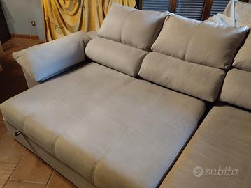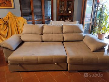 vendo divano letto con penisola in tessuto grigio chiaro usato poco ed in buono stato. i cuscini sono reclinabili. composto da due unità. possibilità di trasporto. Zona Roma Nord