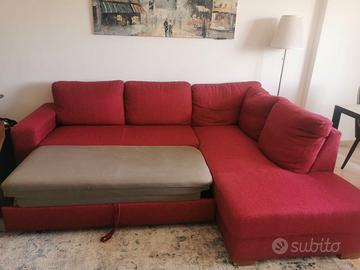 Vendo, per cambio arredamento, divano letto in buone condizioni, ampio e molto comodo. Il tessuto è pulito e senza macchie, con un piccolo difetto visibile in foto. Misure: Lunghezza: 2,30 m Profondità seduta: 85 cm Profondità isola: 2,05 m Altezza: 80 cm Il divano si smonta in 3 pezzi. Si trova al sesto piano: i moduli non entrano in ascensore, ma sono facilmente gestibili con un po’ di organizzazione. Smontaggio e trasporto a carico dell’acquirente.