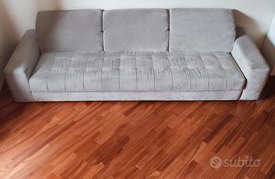 Vendo divano letto grigio in microfibra, con pouf agganciabile, misure divano: 320 x 100 cm, misure pouf: 100 x 100 cm