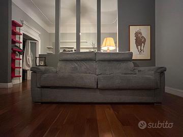 In vendita divano letto di eccellente qualità, made in Italy, rivestito in tessuto grigio adatto a tutti gli ambienti, lavabile e sfoderabile. Il modello è dotato di seduta ampia e schienale alto (larghezza 216cm ; profondità al bracciolo 98cm, altezza al bracciolo 60cm - allo schienale 100cm). Il meccanismo di apertura è semplice e consente di trasformare il divano in un letto matrimoniale completo di rete e di un comodo materasso (larghezza 160cm; lunghezza 188cm; spessore 17cm).