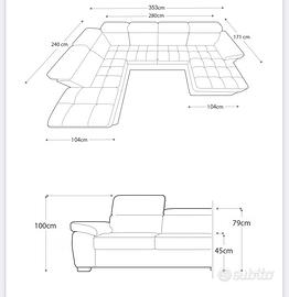 Vendo per errato acquisto divano letto doppia chaise longue contenitore acquistato con prova d acquisto a ottobre 2025. Lo vendo pari al nuovo. Trasporto e smontaggio a carico dell’acquirente.