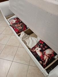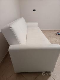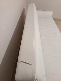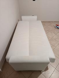 DIVANO LETTO L.210 P.75 CON CASSETTONE - MECCANISMO CLIC/CLAC - RIVESTIMENTO IN ECO PELLE Si tratta di un divano letto contenitore. Seduta e schienale offrono la giusta resistenza per garantire comodità e confort. Il rivestimento in eco pelle, è particolarmente pratico da pulire e mantenere. Le sue misure consentono di stare comodi in 4 persone. Trasformare il divano in letto è semplicissimo e senza sforzo; misure letto aperto SONO, LUNGEZZA 210 e LARGHEZZA 105.È altrettanto facile farlo ritornare nella funzione divano. In ottimo stato, ha solamente un piccolo taglio, come da foto allegata, ma tranquillamente riparabile con apposite toppe. Lo vendo per mancanza di spazio, è stato usato poche volte. Il divano dovrà essere ritirato in loco a spese dell'acquirente. Il costo che chiedo è di 150 euro trattabili, l ho pagato 400 euro 2 anni fa.