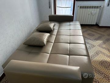 Vendo divano letto contenitore in ecopelle color tortora in buone condizioni. Ritiro a carico dell'acquirente. Prezzo trattabile