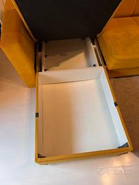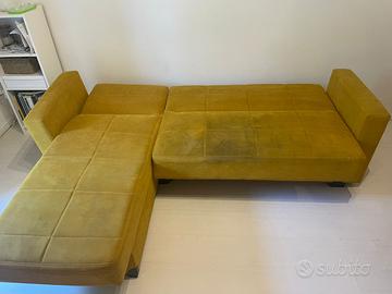 Divano/Divano Letto/Contenitore Colore Senape Mondo Convenienza Tre posti Chaise longe Il divano e’ in buono stato Presenta delle imperfezioni dovute all’ uso sulla seduta. Superficie contenitore leggermente imbarcato Ritiro a carico dell acquirente