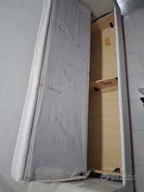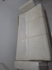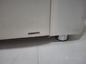 regalo divano quattro posti compreso di copridivano elasticizzato e tre cuscini (come in foto)perfettamente funzionante l unico difetto è l ecopelle spelacchiato,in pratica è uscito fuori il tessuto.Sotto ha il contenitore mai usato in più lo si può usare anche come letto perché si apre totalmente.E' comodo anche perché non si sprofonda.